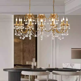 12 Lights 50 Inch Linear Traditional Gold Brass and Crystal Chandelier for Dining Room