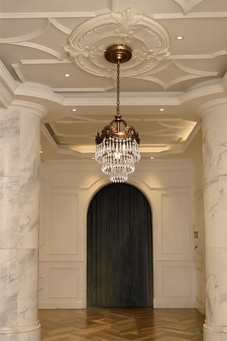10 Inch Mini Chandelier Antique Brass and Crystal Lighting for Hallway