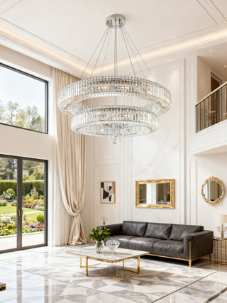 (36+47) Inch Two Rings Crystal Chandelier Modern Living Room Chandelier