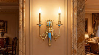 2 Lights European Style Retro Candle Style Bedside Wall Lamp Brass Wall Sconce