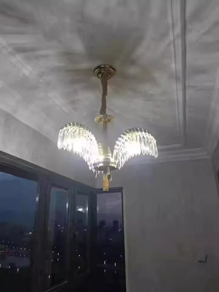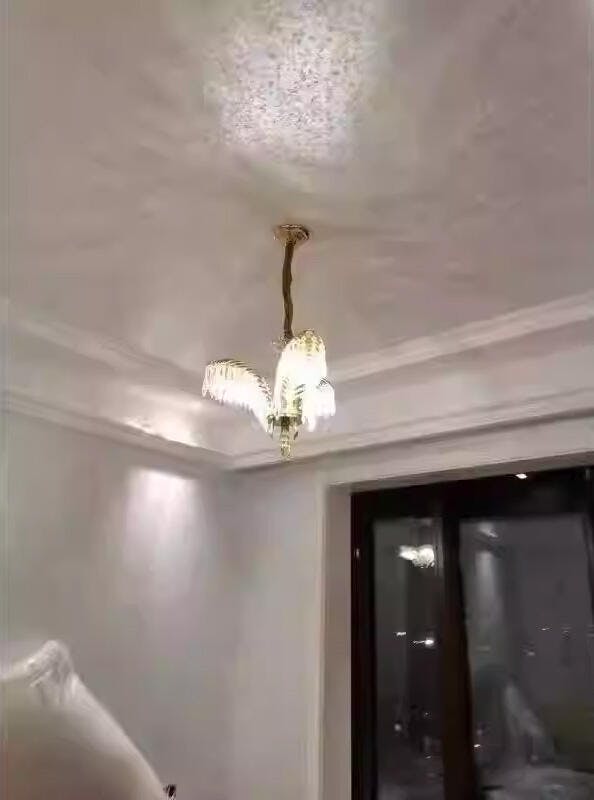 The palm tree brass chandelier, a unique blend of elegance and whimsy, measures 21'' wide and 17'' high. Adorned with high-quality crystal and crafted from copper, it exudes opulence. With 3 dimmable LED lights, it casts a soft, adjustable glow, creating a captivating ambiance. This gold chandelier is a stunning addition to any space, seamlessly combining luxurious materials with a touch of playful sophistication.