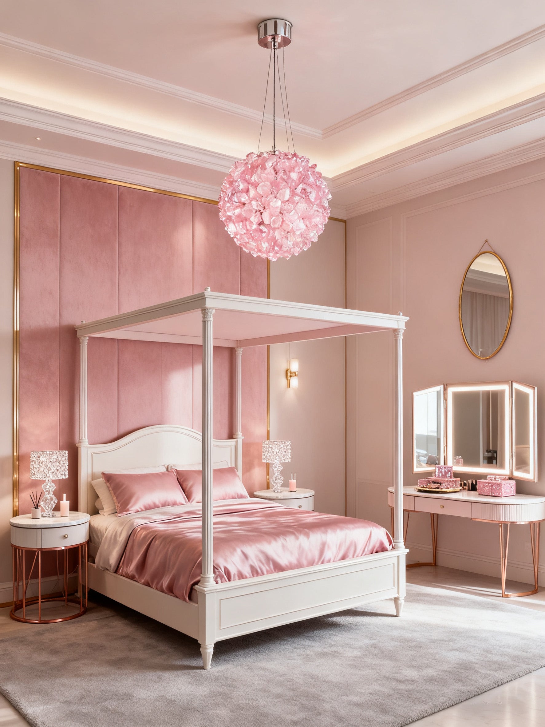 The NS02 chandelier features a chrome finish, with a frame made of iron and stainless steel, paired with natural rose crystals. It comes in diameters of 20 - 55cm, and other sizes can be customized. The rose crystal ball design is romantic, adding a soft and exquisite vibe to the space.