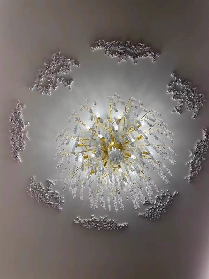 Waited almost a month for this lamp for our newly renovated 22㎡ living room! It was stunning right out of the box — after installation, the aluminum branches and crystal luster instantly elevated the light gray walls