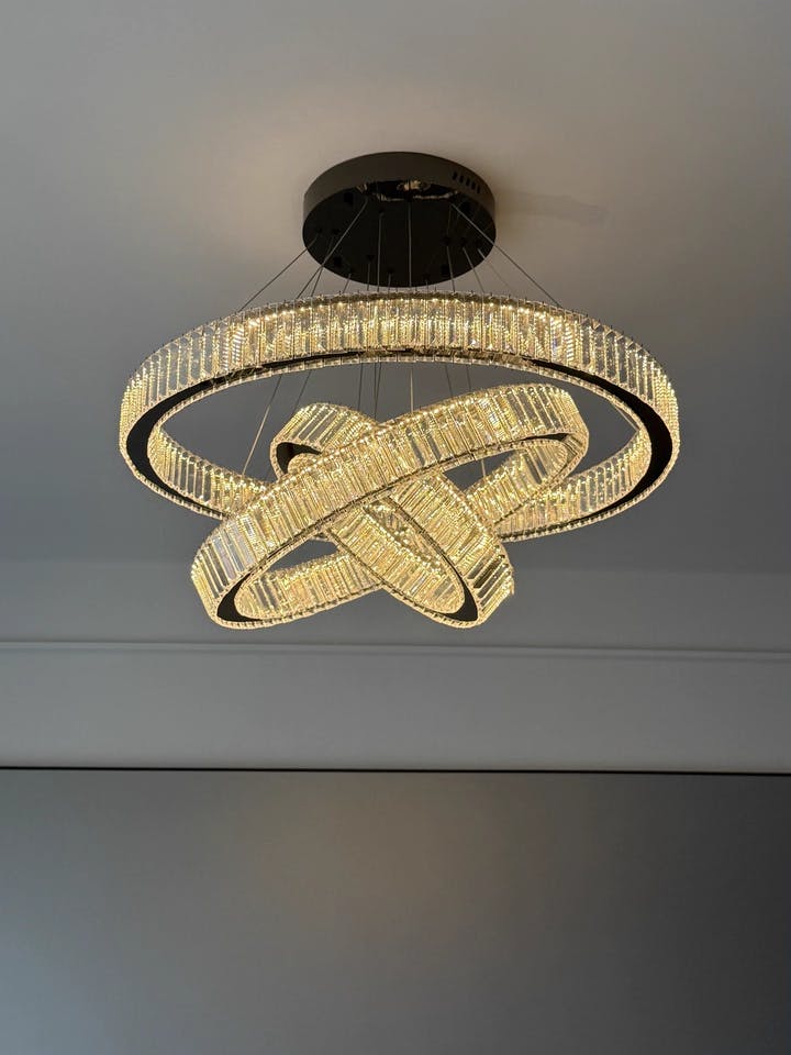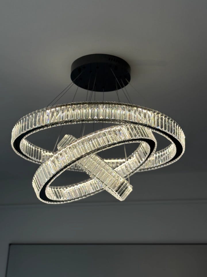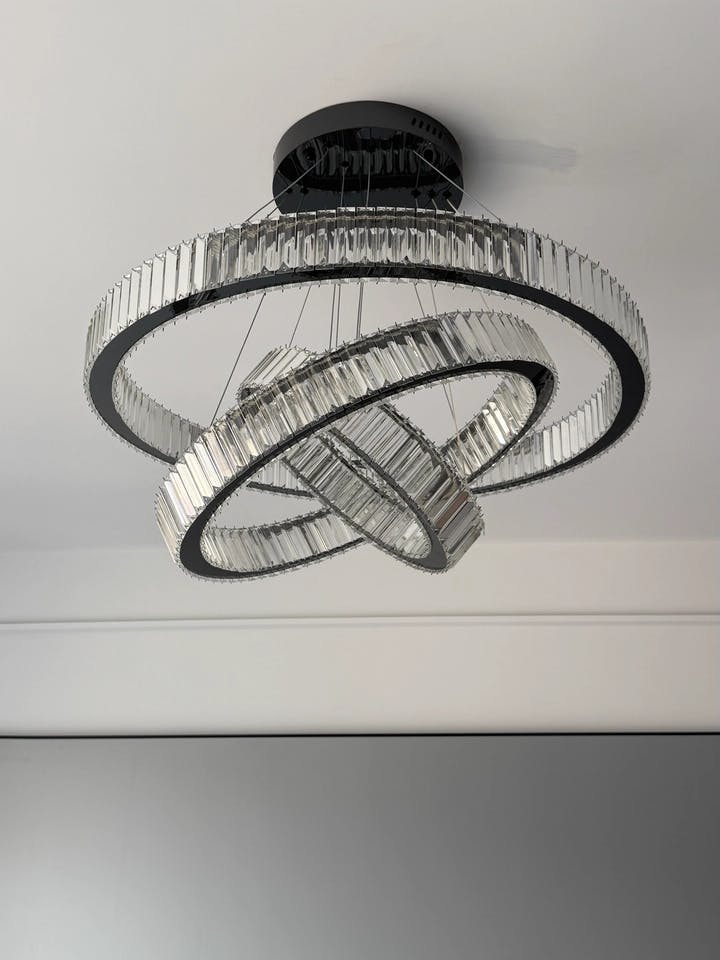 We have an abstract painting in the living room, and it goes surprisingly well with this lamp! The light and shadow from the three crystal rings fall on the painting, making the static art “come alive”. Friends who come over all think it’s a designer match, but I just picked it randomly—it’s unexpectedly harmonious~