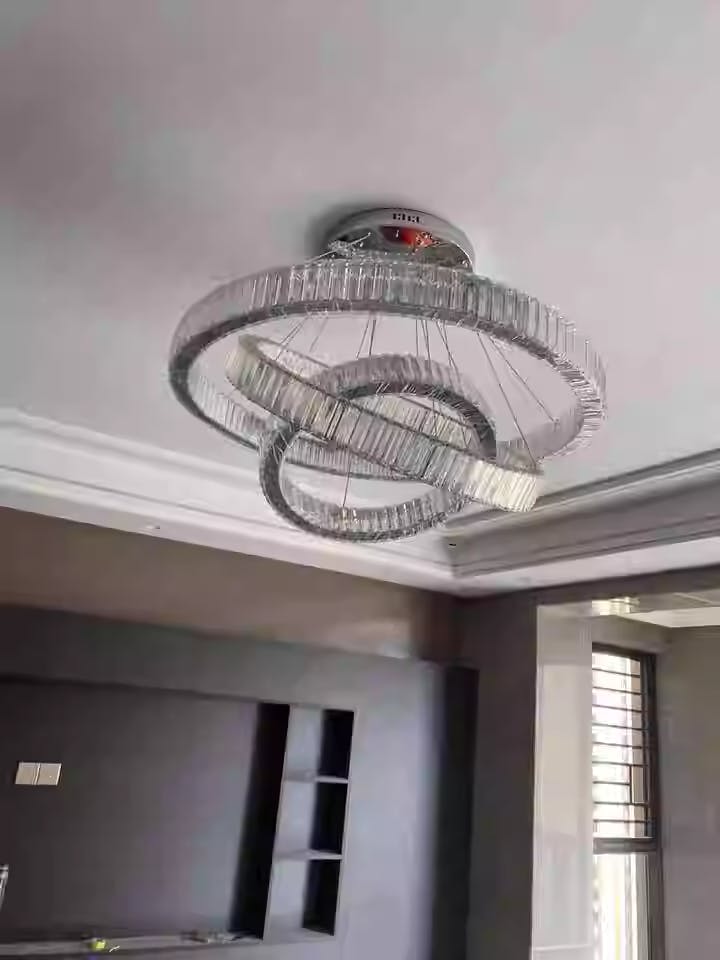 After waiting nearly three weeks, the lamp finally came! Unpacking it, it’s even more exquisite than the pictures—the three crystal rings feel high-quality