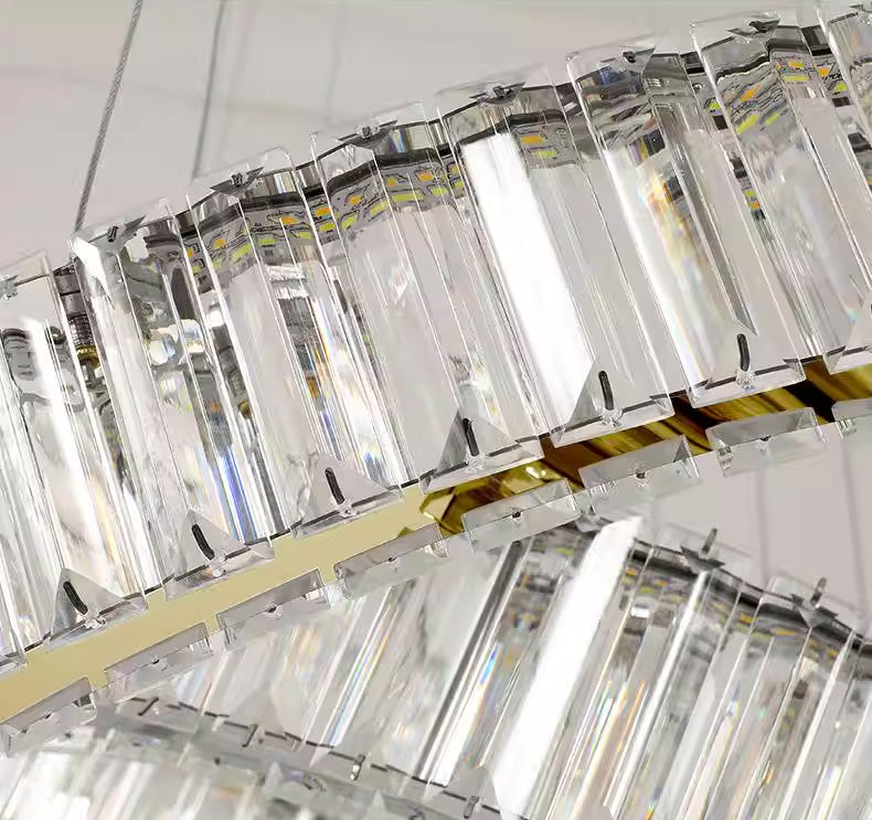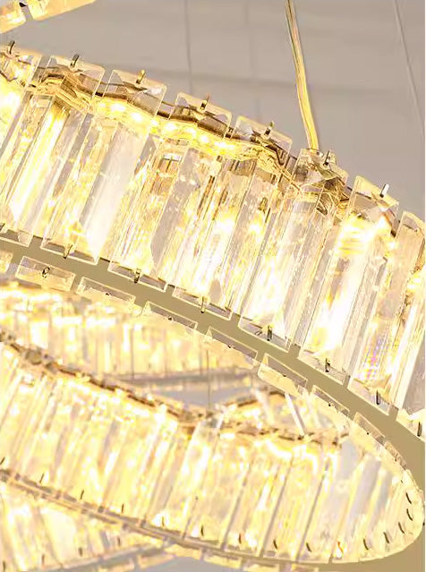 The customizable large chandelier features three rings and is perfect for hotel lobbies or banquet halls. This stunning crystal chandelier illuminates the space with its dazzling crystal lighting. The size of the chandelier can be adjusted to fit any room perfectly. With the added feature of dimmable LED lights, it offers versatility in creating the desired ambiance. This chandelier serves as a grand centerpiece, exuding opulence and elegance, while providing customizable lighting options to enhance the atmosphere of any space.