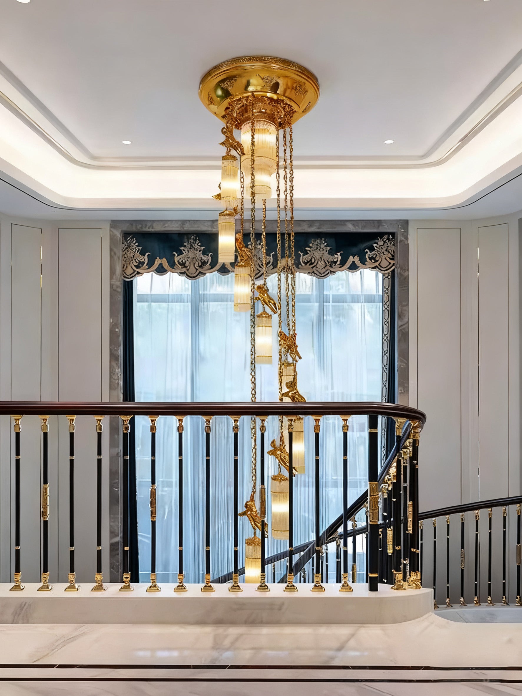 Installing this lamp in our ordinary duplex staircase turns it from a "transition space" to a "visual focal point"! Brass angels and crystal columns cascade along the stairs, and when warm light is on, each step is gilded with soft gold — descending feels like walking a "starlight stairway".