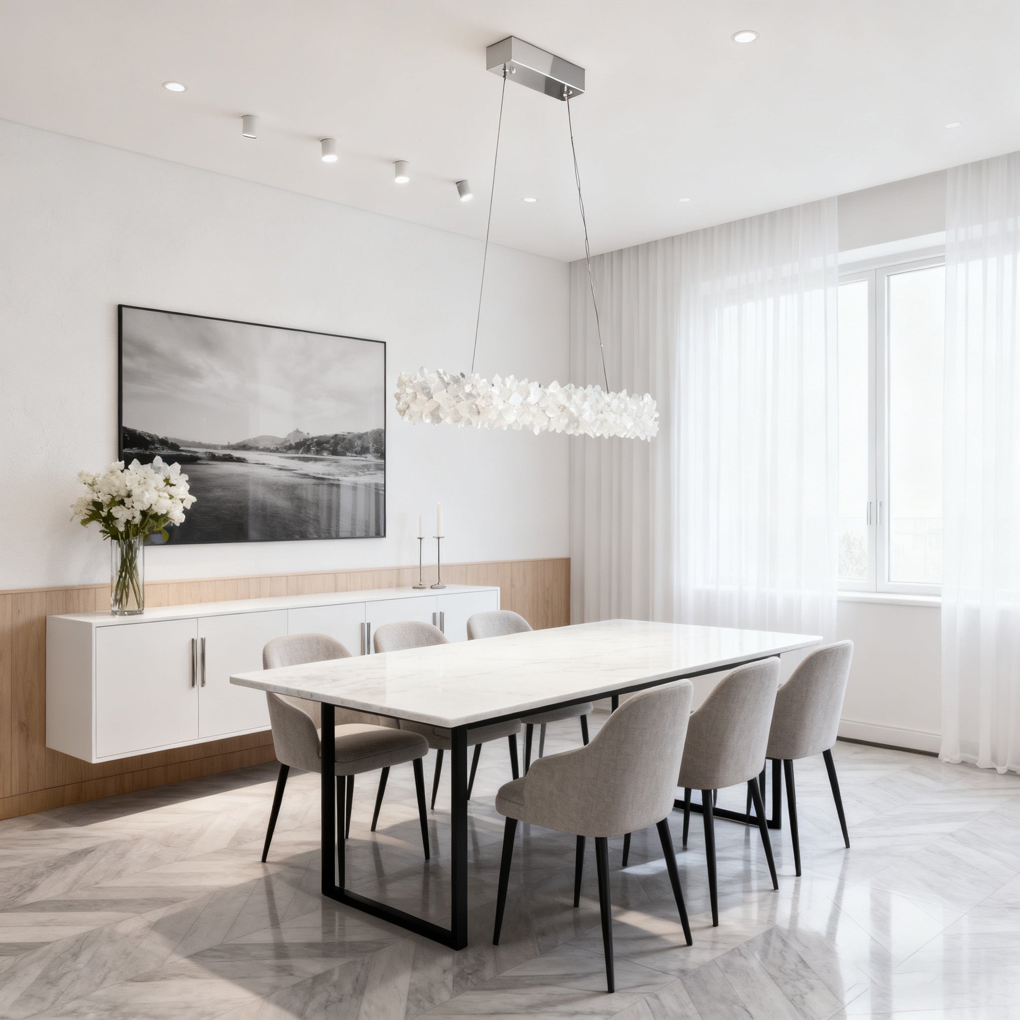 Modern Linear Geode Quartz Crystal Pendant Light