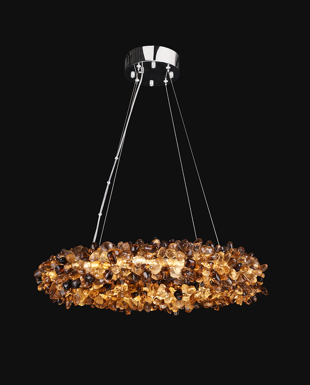 Multiple Size Modern Smoky Rock Crystal Halo LED Chandelier Pendant Light